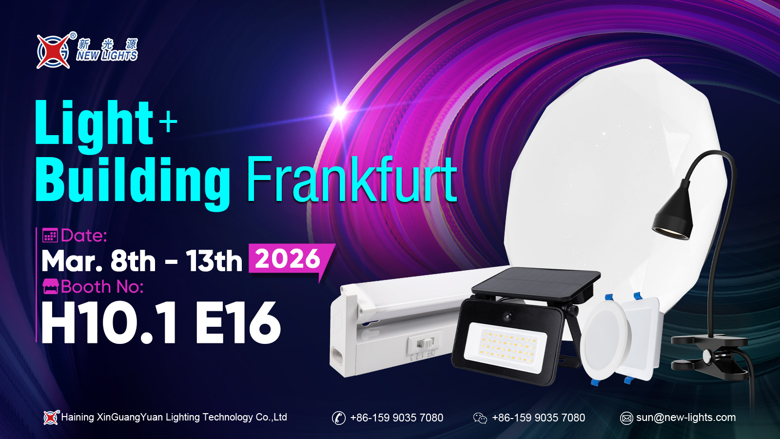 Haining Xin Guang Yuan Lighting Technology Co., Ltd participará en la exposición internacional de iluminación en Frankfurt, Alemania, desde 8 de marzo al 13 de marzo de 2026 . La empresa expondrá en Stand H10.1 E16 . Durante la exposición, Haining Xin Guang Yuan Lighting Technology Co., Ltd mostrará sus últimas tecnologías de iluminación y soluciones de productos, y participará en intercambios profundos con profesionales y socios de la industria de todo el mundo. Los visitantes pueden pasar por el stand para participar en debates y oportunidades de cooperación.